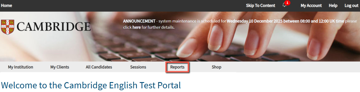 1. Inicie sesión en el Portal de Pruebas de Cambridge English (Metrica)