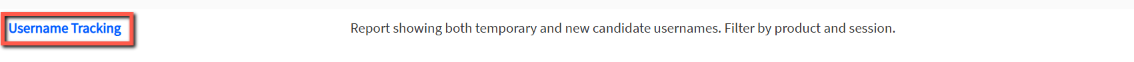 El informe de Seguimiento de Nombre de Usuario proporcionará el Inicio de Sesión Temporal, así como el Nuevo Inicio de Sesión creado después de que el candidato haya iniciado sesión e ingresado su información personal. Esto ayudará a llevar un registro de qué candidatos han accedido a su prueba usando los Inicios de Sesión Genéricos generados por Metrica.